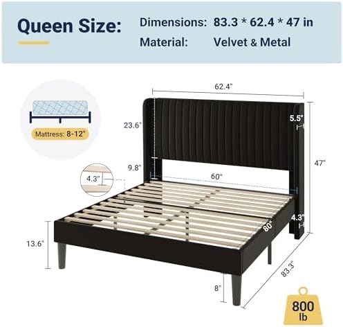 Constructed with a high-quality metal frame and center support legs, our bed frame guarantees exceptional durability. With a weight capacity of 800 lbs, you can rest easy knowing your bed can withstand daily use.