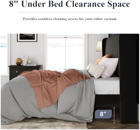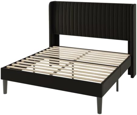 Transform your bedroom with our modern wingback headboard design. Wrapped in smooth velvet and soft sponge, this bed frame adds a touch of elegance while ensuring a cozy sleeping environment.