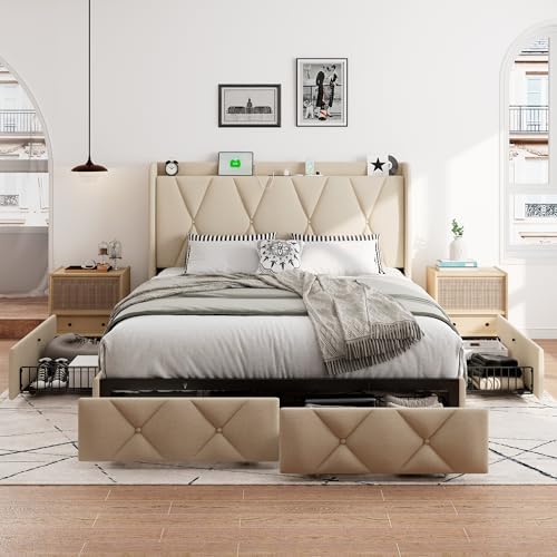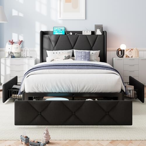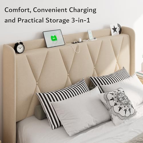 The headboard is designed with practicality in mind, offering reserved space for a nightstand. This ensures easy access to items stored in the under-bed drawers. Additionally, the 4-inch storage headboard provides extra room for keeping books and phones within reach.