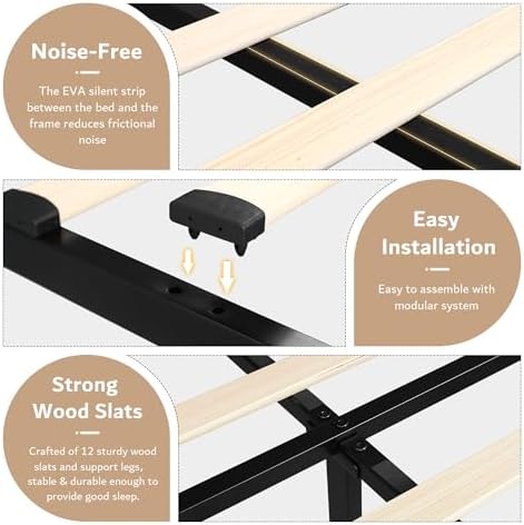 Crafted from heavy-duty metal and 12 thick wood slats, this bed ensures a stable and firm structure for a restful night’s sleep. The EVA sponge is an added benefit, effectively reducing creaks and noises when getting in or out of bed.