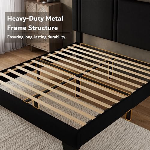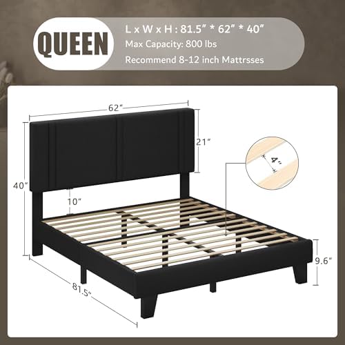 Forget about box springs! Our platform bed features evenly spaced wooden slats that support your mattress while extending its lifespan. Designed for mattresses with a thickness of 8″ to 12″, it provides a reliable base for restful sleep.