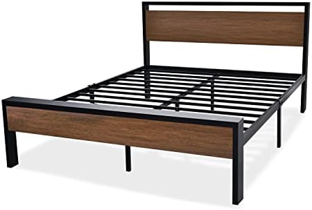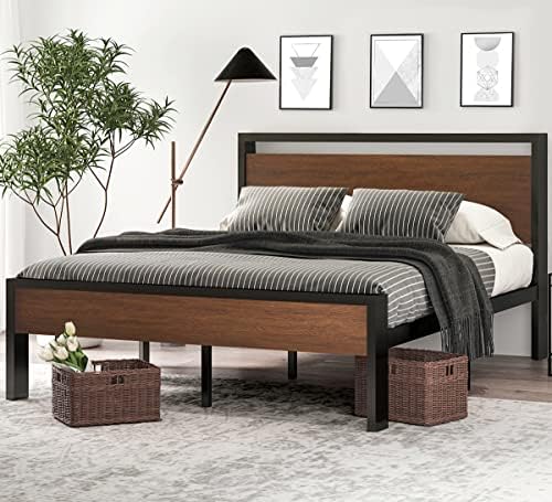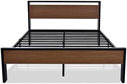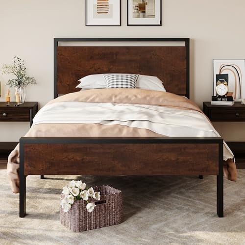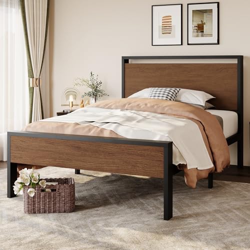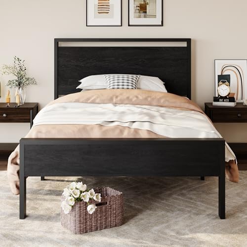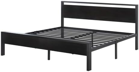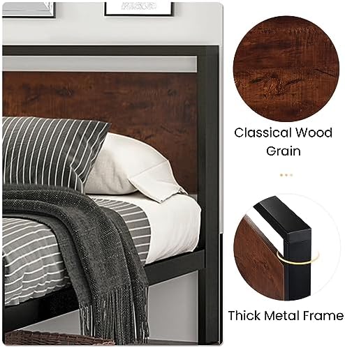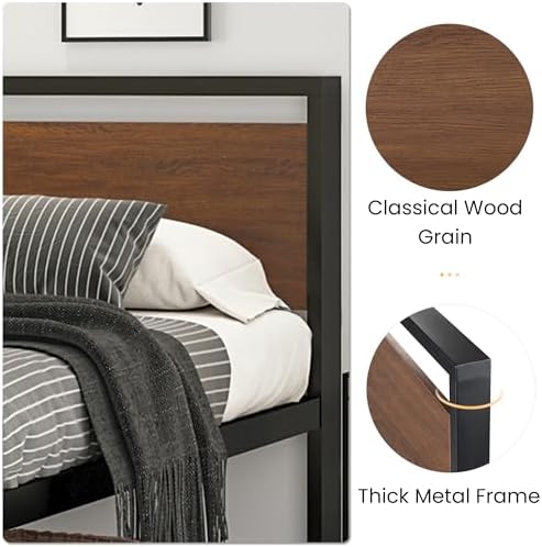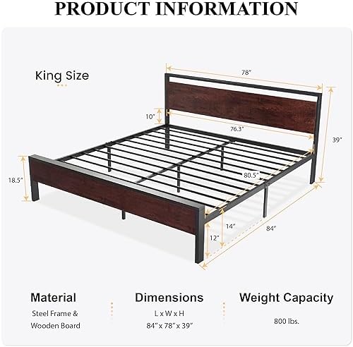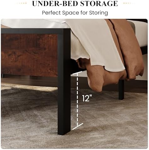 Featuring a captivating blend of a rustic-style headboard and footboard complemented by retro frosted metal slats, this bed frame delivers a distinctive industrial and rustic charm to your bedroom. The headboard is made from waterproof and scratch-resistant wood, ensuring both style and durability.