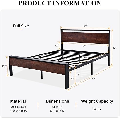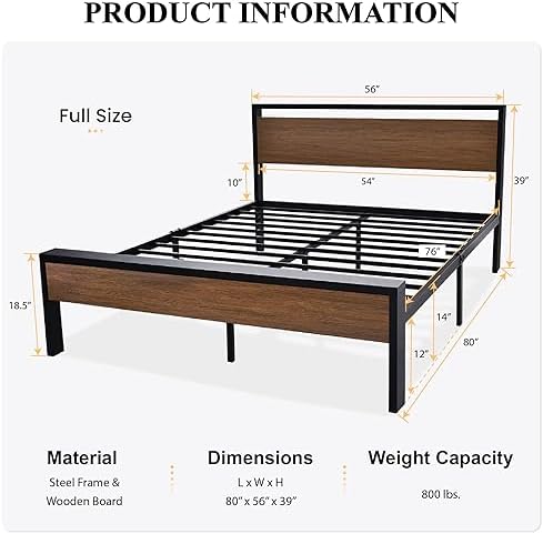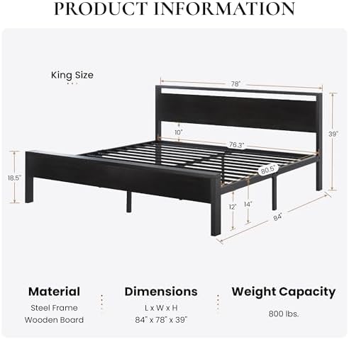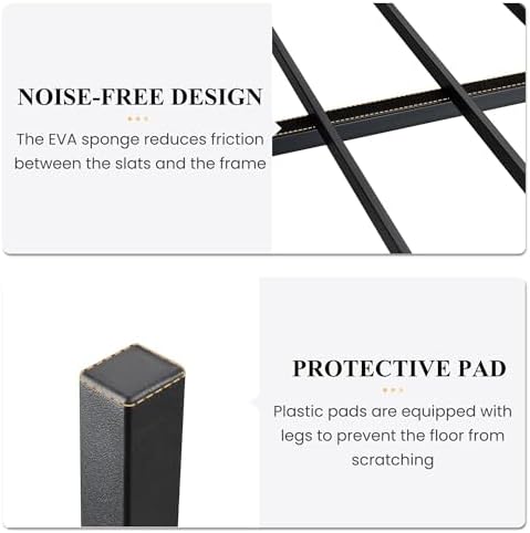 Crafted from a robust metal framework, this bed frame boasts an impressive load-bearing capacity of up to 800 pounds. Its thickened bed feet ensure stability, preventing any unwanted shaking for a restful night’s sleep.